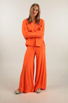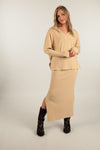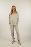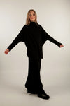 Short and large v-neck sweater with two slits on the side. Can be worn with v-neck in back.