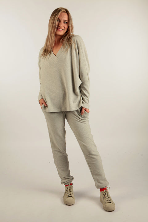 Pencil pants with elastic at the bottom, fake zip, two pockets and fine elastic waistband. QualitySoft, stretchy and very comfortable.Italian material and Belgian production.(48% Polyacryl / 48% Cotton / 4% Elastane)...